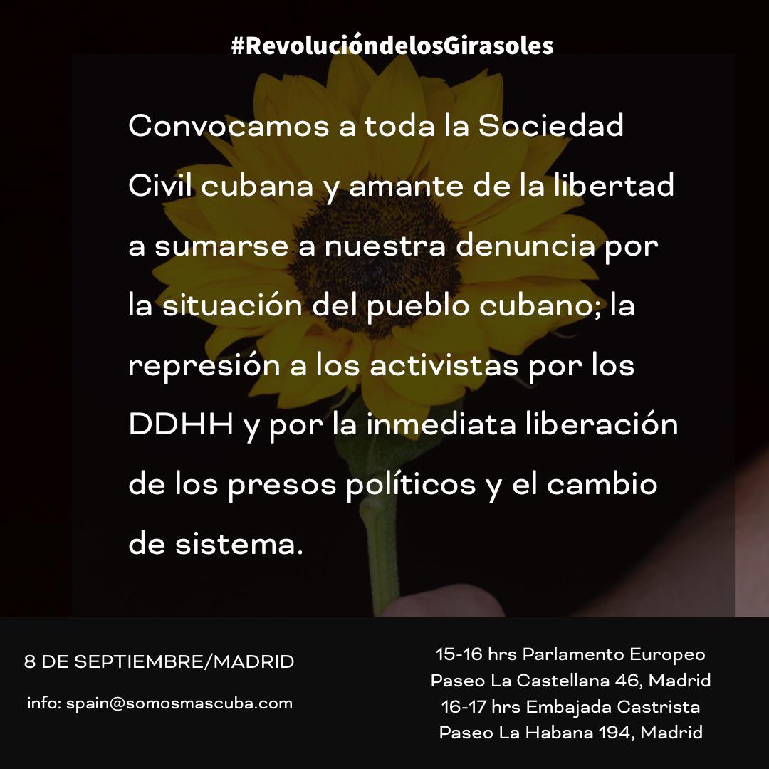 En las acciones convocadas para este 8 de septiembre los miembros de los clubes de Somos+ y de la sociedad civil amante de la libertad y la democracia, visibilizaremos una vez más la situación de Cuba.